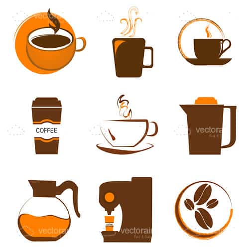 A perfect vector icon set for coffee lovers. This set has nine different icons with coffee related items, all designed in brown, orange and white tones, alternating filled and outlined styles. With a variety of steamy hot cups of coffee, coffee makers and coffee beans, you have icons for your every need when it comes to one of world's most popular brews. Download it for free, and in easy editable .EPS format that makes it so simple to include these icons in your work!