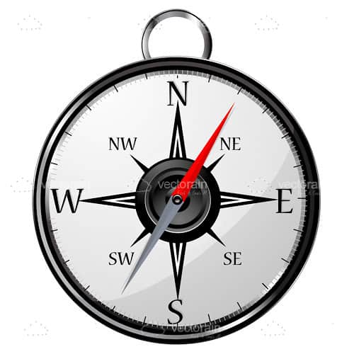 Check out this cool vector illustration of a realistic looking compass with metallic grey border and hanger ring. With white background and black indicators and red accents on the pointing needle, this design is a good complement for any design, and it's available for free in .EPS format only at VectorJunky!