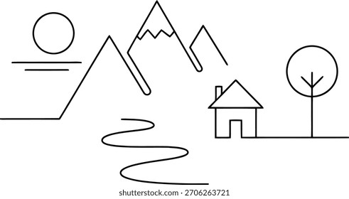Geometric Nature Scene with Tree and Sun