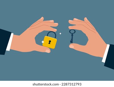 Professionally designed vector illustration featuring two segments of shiny silver, links chain held together by a central, shiny gold padlock with keyhole in the center. On a white background, this design is a good fit for themes like security, protection, safety, and similar. Download it for free in .EPS format and use it for websites, blogs, adverts, flyers, posters, etc.