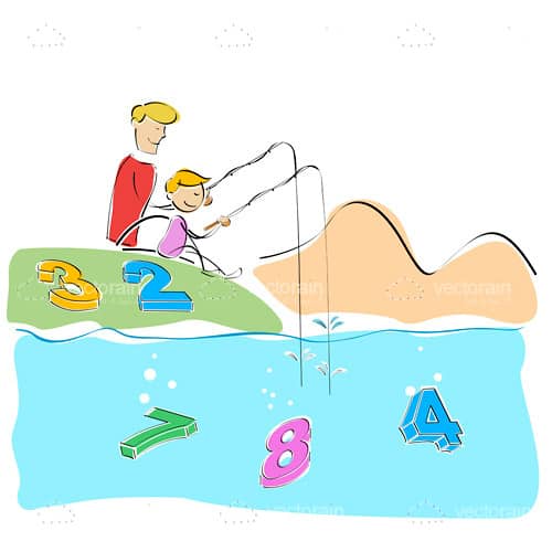 Illustrated Parent and Child Fishing for Numbers