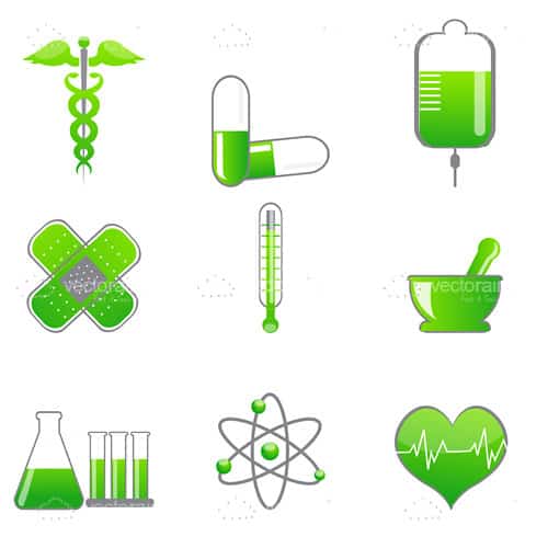 Very useful vector icon set with different medicine symbols and items. All designed in glossy green and white with some grey outlines and details, these icons are perfect to complement any medical related design or interface. Download the set for free in easy editable .EPS format and adjust these designs to your needs!