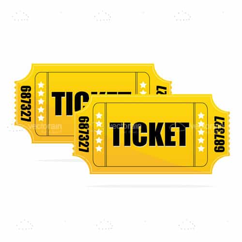 Versatile vector illustration showing an overlaying pair of typical yellow tickets with black letters and details, including code numbers in vertical orientation and pierced holes on both sides. Isolated on white, these graphics are ideal for adverts, websites, banners, flyers and more. Download them for free in .EPS format and use them right away!