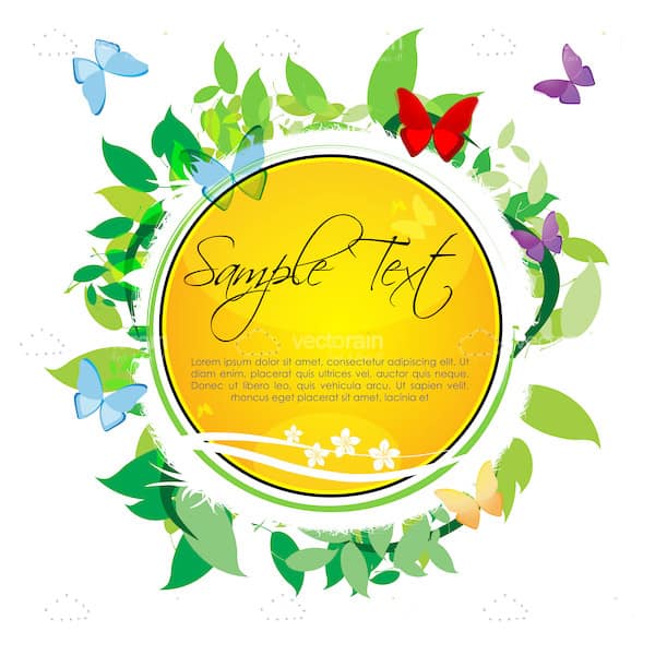 Check out this cool looking card background! Coming with a yellow circle center and surrounded by leaves and butterflies, this awesome background would look great on all sorts of designs and with plenty of space for your own text, this design can be made truly unique! Grab it now, totally free of charge and use it on your websites, flyers, cards, logos, backgrounds and so much more! Exclusively from VectorJunky, grab it now and use it wherever you like, however you like!